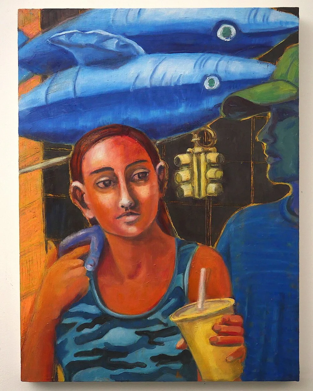 Caroline Otis Heffron lives and works in Brooklyn, New York. Her painting process begins with drawing and collage that combine images of urban workers, street performers, and people reacting to life in public spaces. Flea markets, carnivals, museums and street fairs are blended and compressed to make complex urban spaces filled with animated humans, gestural statues, and symbolic cultural objects . New connections emerge through reworking layers of information and the exploration of unique connections formed through relationships of color and gesture.