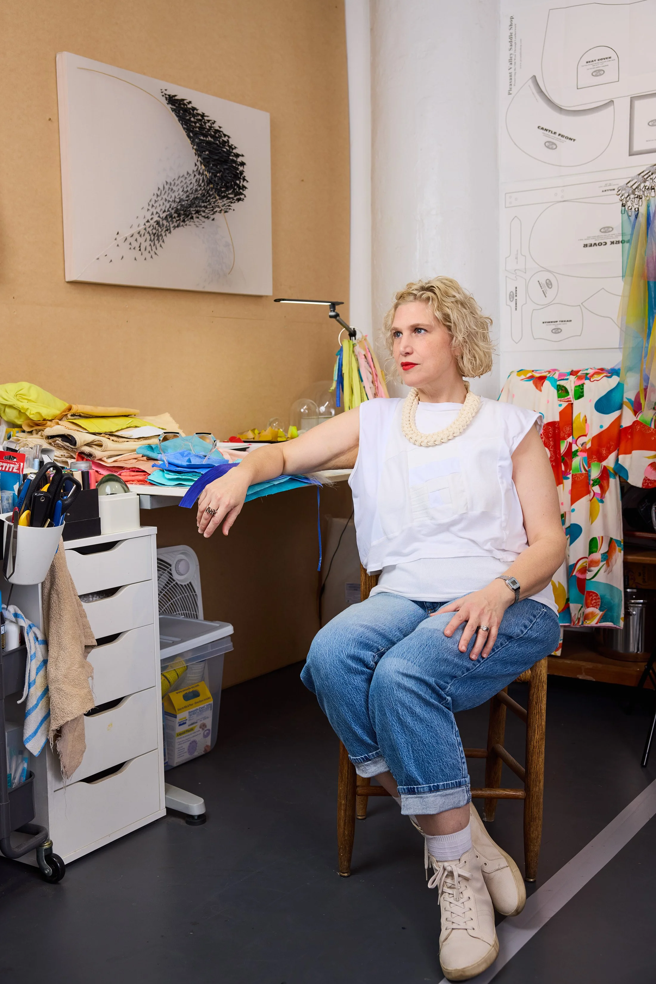 The daughter of a horse trainer, Adgnot earned a BFA in Texas. She immigrated to France in her 20s, eventually becoming a dual American/French citizen and studying fashion. Originally a painter, her experience making garments for haute couture runways led her to focus on sculpture. Later, while living in Japan, she began using thermoplastic (an artist-grade shrink plastic) to work three-dimensionally. Her mediums have expanded to include textiles, horsehair, and other materials that signify all of these places.