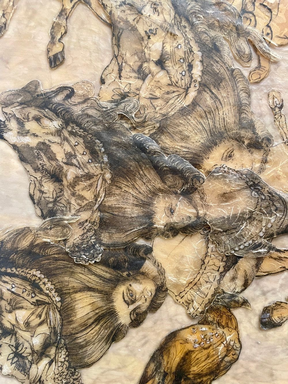 You Make Me Feel Like I’m Seventeen Again, ink and watercolor on Japanese paper on panel with acrylic, 34 x 32 inches.