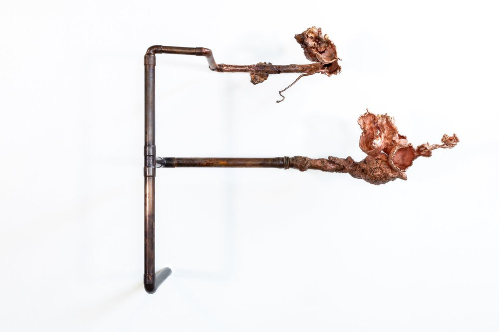 Molting IV, Electroformed copper and copper pipe, 24 × 21 × 4 inches, 2025