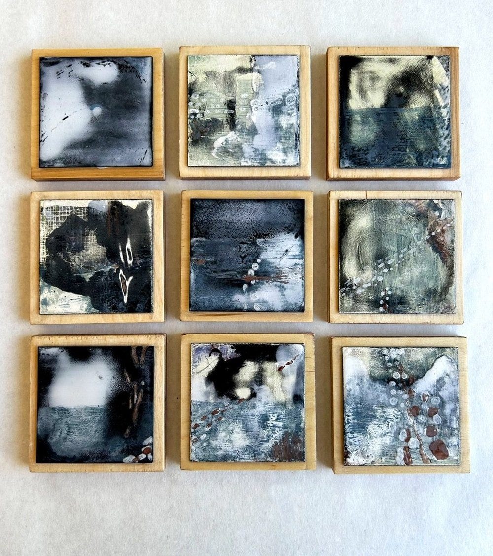 Muscle Memory, Liquid porcelain on steel plates, 12 x 12 inches, 2024