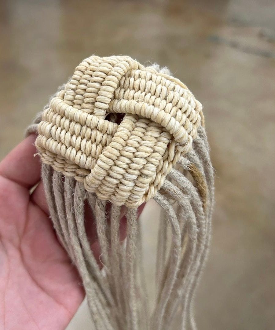 JD: Like many New Yorkers, my studio is my apartment. New work is born out of falling in love with a new material or process. Currently, that love is twining waxed linen to create both useful vessels and sculptural forms. Twining feels familiar because I have done a lot of floor-loom weaving and am comfortable with the slow process. I think a lot about the muscle groups I use while making, and the connection between that part of my body and the art object that is produced.