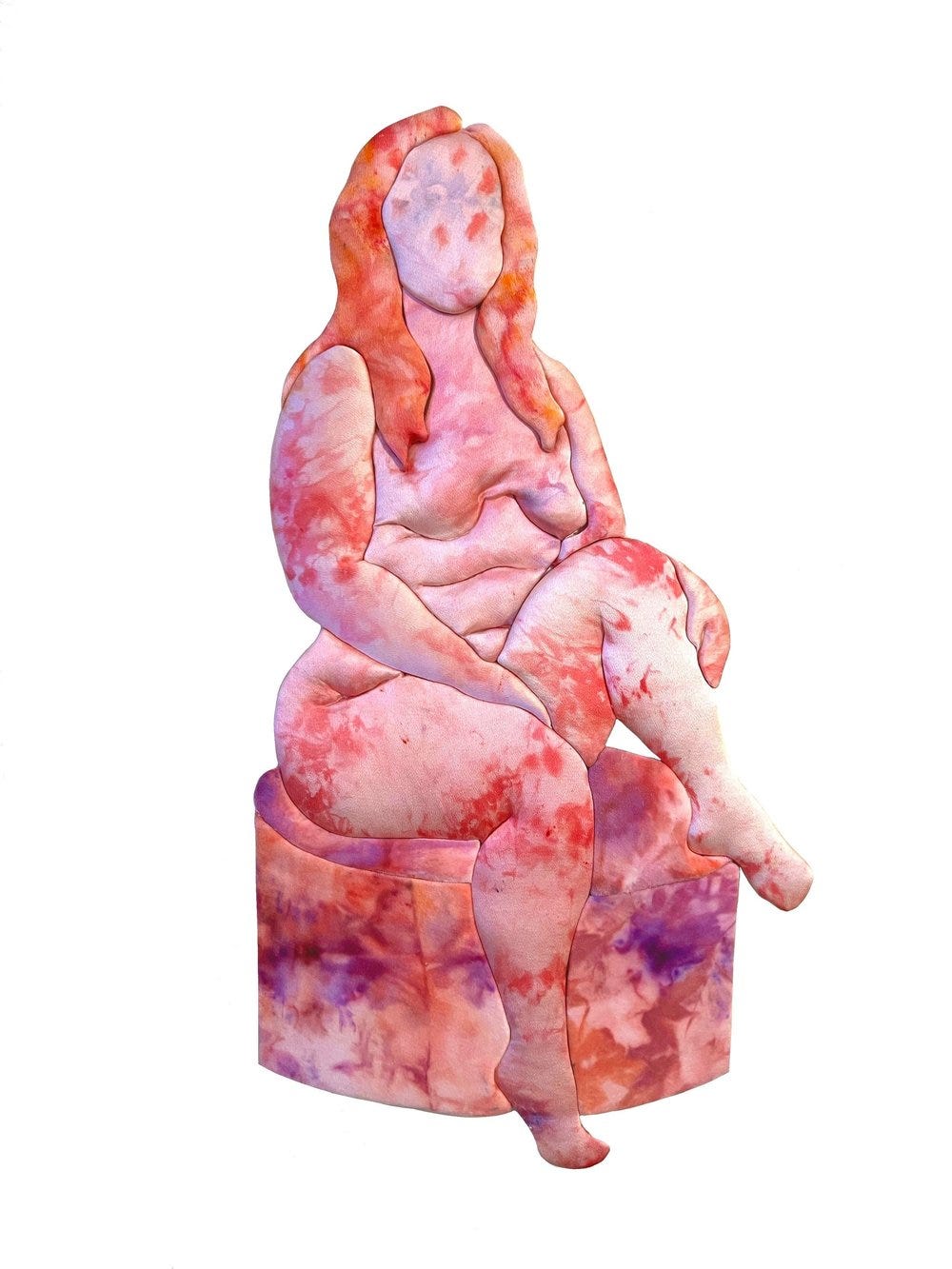 In all her Glory, Dyed silk and velvet tufted with batting on foam core, 14 x 25 inches, 2023