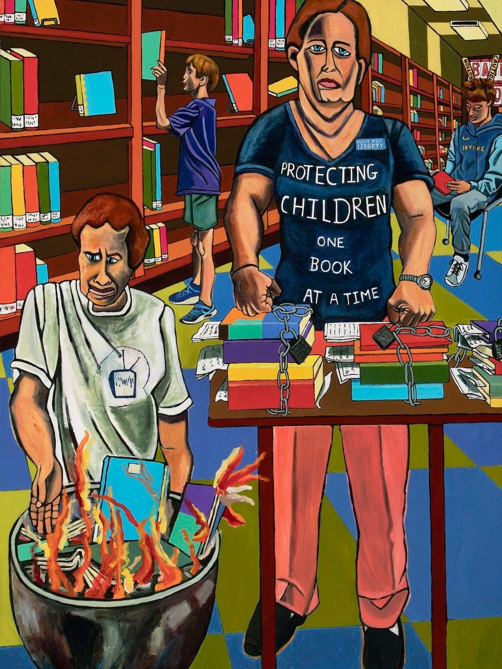 Protecting Children: One Book At A Time (from God and Country series), Acrylic on canvas, 36 x 48 inches, 2024
