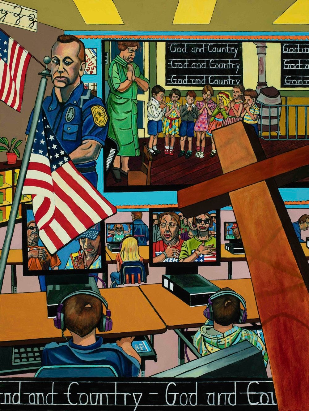 God & Country: Morning class (from God and Country series), Acrylic on canvas, 38 x 46 inches, 2024
